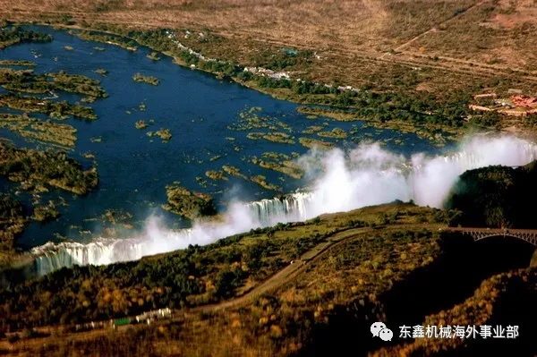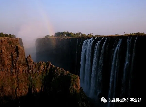 將近兩公里寬的維多利亞大瀑布共分成五段,分別稱之為魔鬼瀑布、主瀑布、馬蹄形瀑布、彩虹瀑布和江瀑布。觀看完整的瀑布全景可不是一件容易的事,因?yàn)檫@個(gè)大瀑布同時(shí)也是津巴布韋和贊比亞兩國的“分水嶺”。津巴布韋擁有瀑布的三分之二,贊比亞擁有另外三分之一。令我感到榮幸的是,3年之后我赴贊比亞參加中航國際工程機(jī)械出口交付儀式,又有了機(jī)會從贊比亞這邊,近距離欣賞上次去非洲無緣看到的維多利亞大瀑布的另一半,特別是整個(gè)最美的一段——彩虹瀑布。